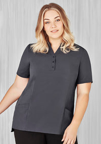 Short top in soft fabric with a square neckline and draped bodice. Long sleeves with narrow elastic at shoulders and cuffs. Lined bodice.