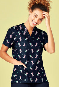 Short top in soft fabric with a square neckline and draped bodice. Long sleeves with narrow elastic at shoulders and cuffs. Lined bodice.