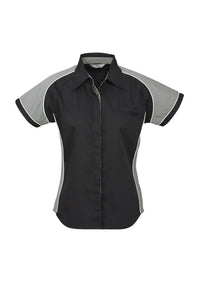 Short top in soft fabric with a square neckline and draped bodice. Long sleeves with narrow elastic at shoulders and cuffs. Lined bodice.