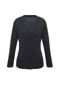 Longer hip length with matching ribbed sleeve and hem detail, slim-line, button through placket