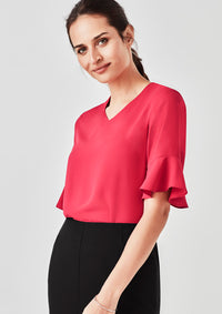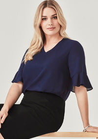 Short top in soft fabric with a square neckline and draped bodice. Long sleeves with narrow elastic at shoulders and cuffs. Lined bodice.