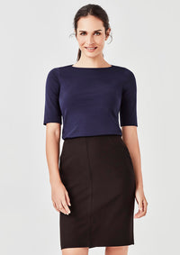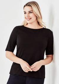 Short top in soft fabric with a square neckline and draped bodice. Long sleeves with narrow elastic at shoulders and cuffs. Lined bodice.