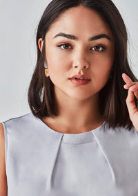 Short top in soft fabric with a square neckline and draped bodice. Long sleeves with narrow elastic at shoulders and cuffs. Lined bodice.