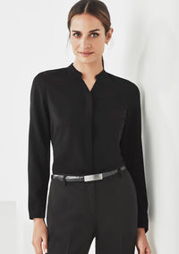 Short top in soft fabric with a square neckline and draped bodice. Long sleeves with narrow elastic at shoulders and cuffs. Lined bodice.