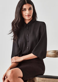 Short top in soft fabric with a square neckline and draped bodice. Long sleeves with narrow elastic at shoulders and cuffs. Lined bodice.
