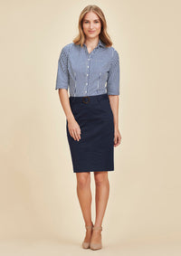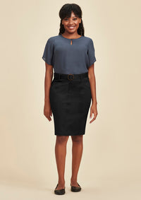 Short top in soft fabric with a square neckline and draped bodice. Long sleeves with narrow elastic at shoulders and cuffs. Lined bodice.