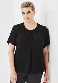 Short top in soft fabric with a square neckline and draped bodice. Long sleeves with narrow elastic at shoulders and cuffs. Lined bodice.